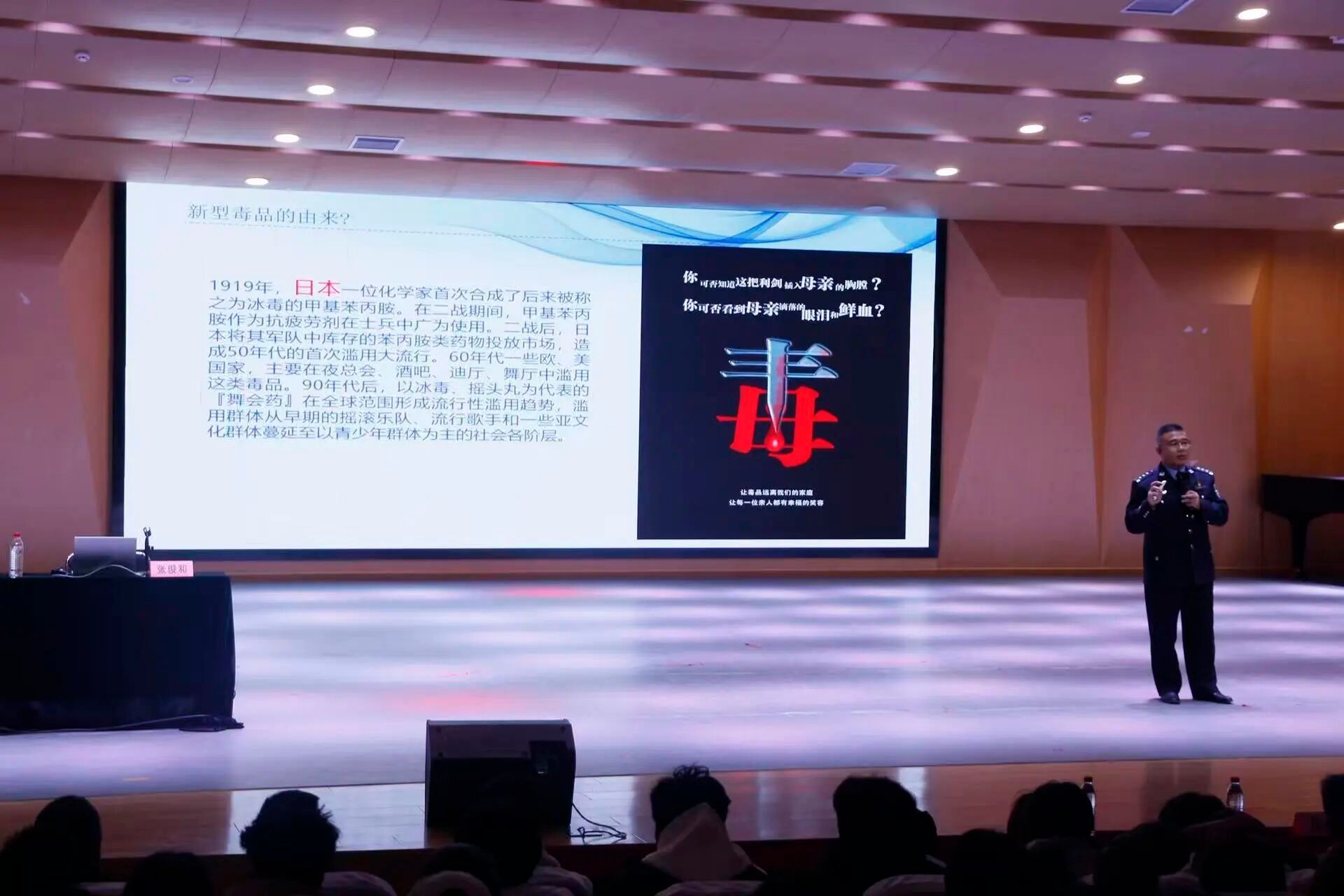 讲座开始,球友会党委副书记吕垒介绍了主讲人山西省强制隔离戒毒所四级高级警长、教育科科长,山西省蒲公英禁毒宣讲团团长张俊和的荣誉与成就,强调讲座对守护员工安全、筑牢家庭幸福防线的意义。