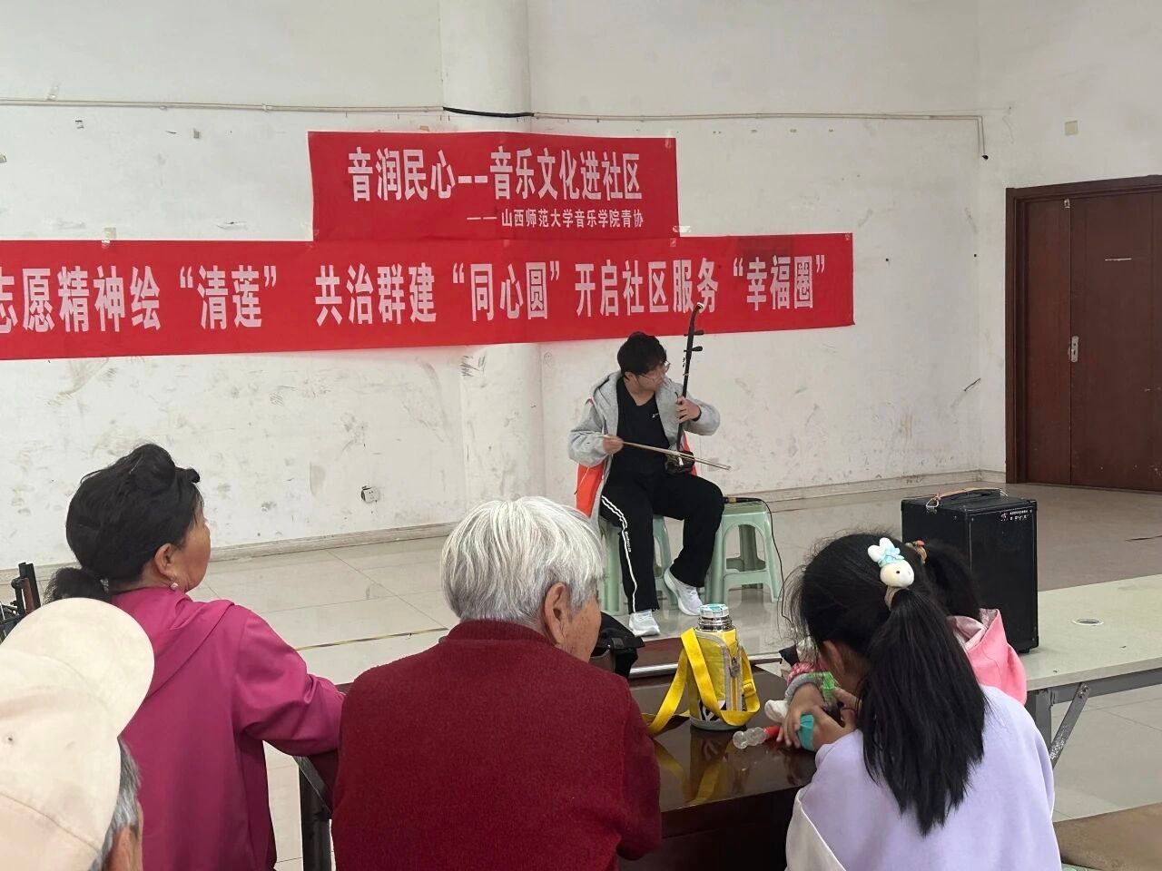 为弘扬志愿精神,丰富社区文化生活,近日,球友会青年志愿者协会联合2401班走进辰兴雅郡社区,开展"音润民心"主题活动。青年学予以音乐传递温暖,用行动践行志愿,为居民带来精彩的视听享受。