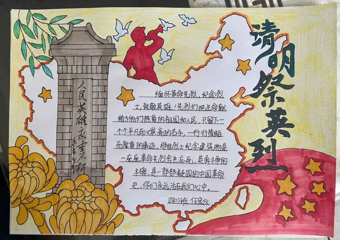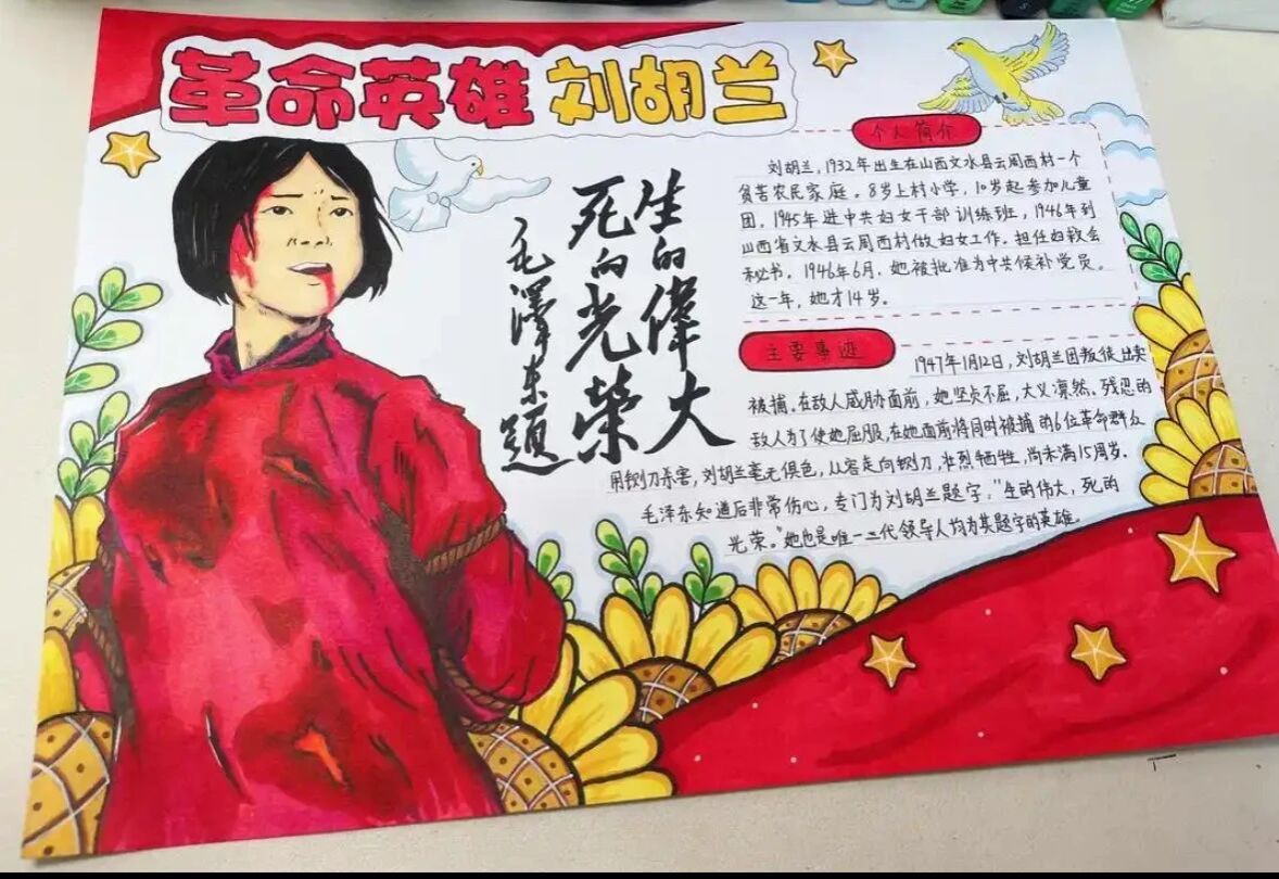 活动前期,各班级通过班会课组织员工搜集革命先烈与时代楷模事迹,整理资料、筛选图片积累素材。创作阶段,同学们围绕“英雄精神”设计版面,用水彩勾勒场景、以思维导图梳理品格,并融入手写感悟。展评阶段,师生评审团从主题、设计、内容三方面打分,优秀作品旁设留言区供交流,形成互动氛围。