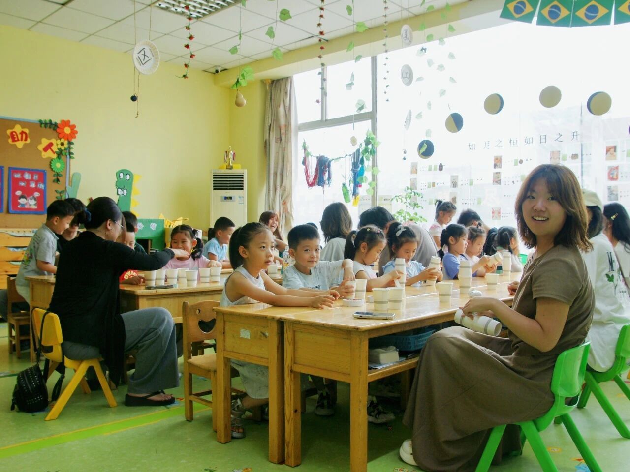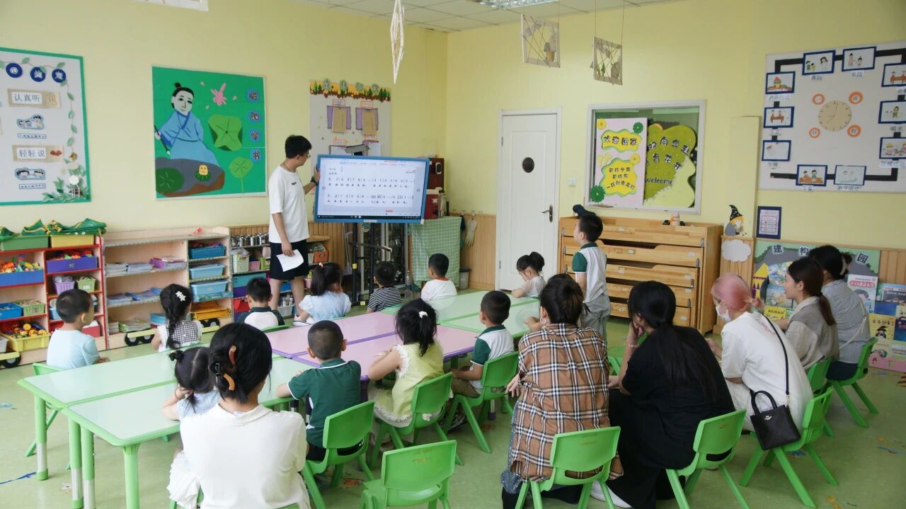 “音乐启蒙·爱国情感培育”环节,成为浸润式教育的生动注脚。动画短片中冉冉升起的国旗,与《国旗国旗真美丽》的旋律共振,孩子们模仿升旗手势的稚嫩动作里,藏着对国家最纯粹的敬意;投影仪上恢弘的天安门影像,与《我爱北京天安门》的节奏训练相融,拍手、拍腿、跺脚的律动中,爱国情怀随音符自然生长。
