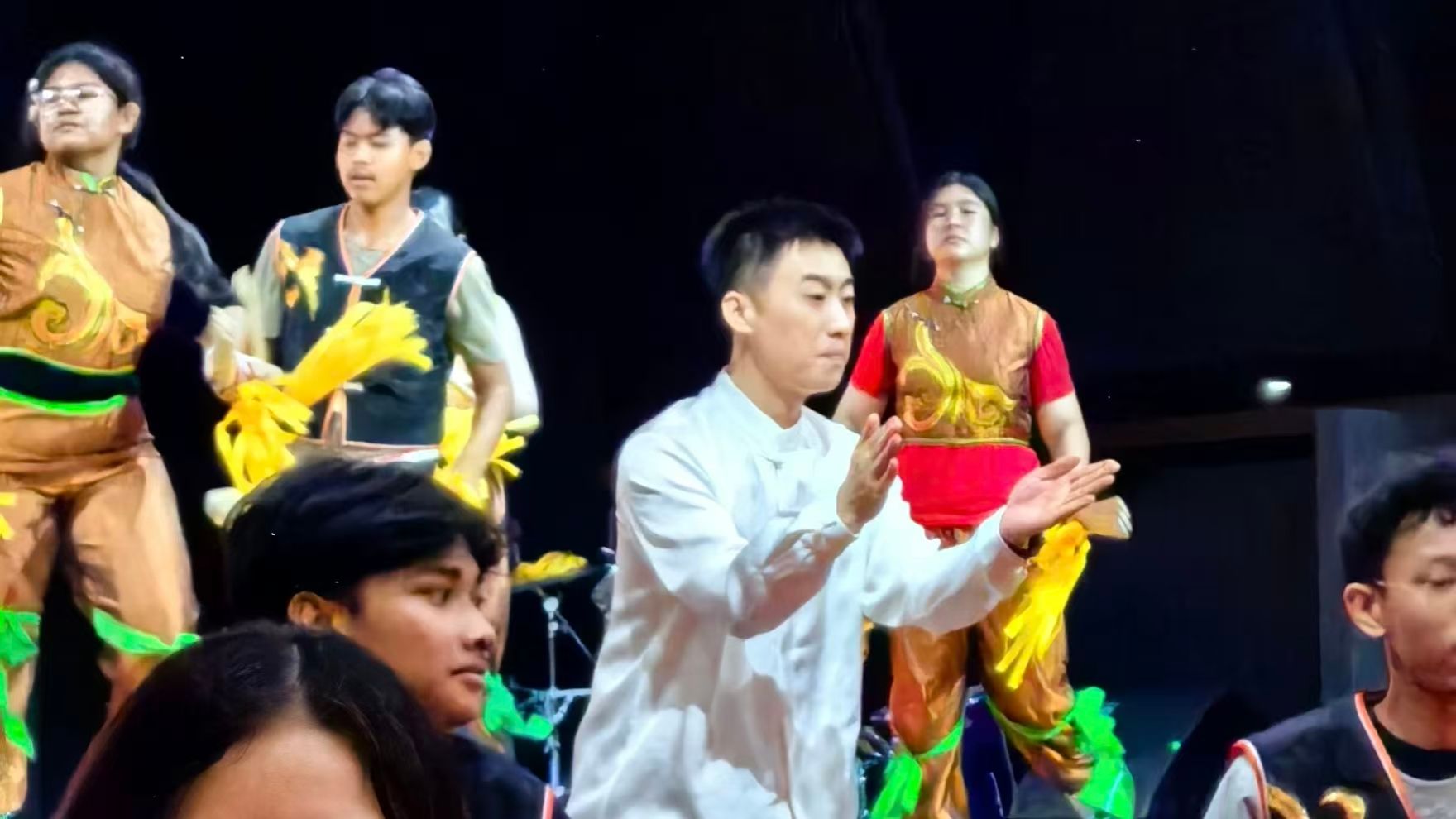 活动中,球友会员工将“教学传艺”与“舞台展演”紧密结合:在教学环节,针对性开设山西民歌、竹笛演奏、翼城浑身板等课程,通过逐句教唱、技法拆解等方式,让印尼员工从初识到掌握基础演绎,推动中国传统文化落地生根。在汇报演出中,带来山西民歌联唱《交城山》《大红公鸡毛腿腿》,展现山西文化质朴热情;竹笛齐奏《我和你》,以笛声传递中印尼绵长友谊;合唱《采茶扑蝶》带观众领略了江南采茶的诗意与灵秀。在民族音乐与舞蹈交流环节,中国员工与印尼员工互教互学,不仅呈现了《庆丰收》山西翼城浑身板表演,明快鼓点、灵动舞姿再现丰收盛景,还共同演绎了印尼舞蹈与中国民族舞蹈,以多元艺术形式全方位展现中华文化魅力,彰显中外艺术交融之美。