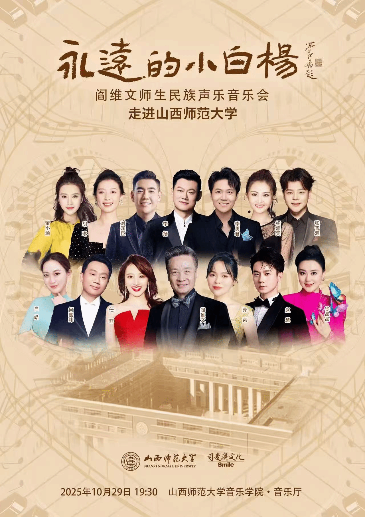 10月29日晚,球友会音乐厅内座无虚席、掌声如潮。“永远的小白杨——阎维文师生民族声乐音乐会”在此倾情上演,为全校师生带来一场高水准的民族声乐盛宴。