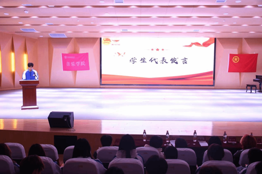 仪式环节紧凑庄重:首先,全场肃立齐唱《中国共产主义青年团团歌》,嘹亮歌声凝聚“跟党初心”;