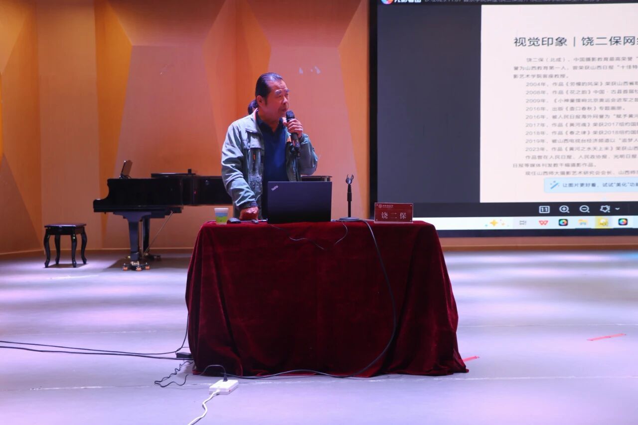 为丰富课余生活、提升摄影与新闻宣传素养,助力球友会宣传工作,球友会于11月7日在音乐厅举办了“光影叙事,新闻破圈”摄影分享会。此次讲座特邀中国摄影教育最高荣誉“红烛奖”获得者饶二保老师担任主讲嘉宾。球友会团委书记李阳老师,专职辅导员李璿老师与团学组织全体同学共同参与本次分享会。