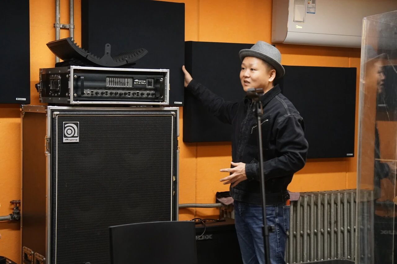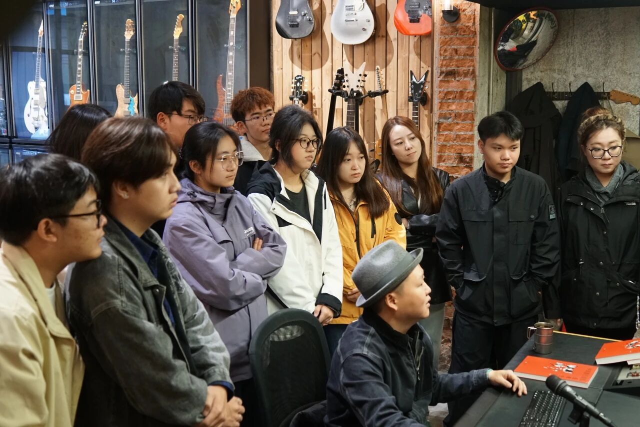 梁健老师为同学们简单介绍了工作室构造、设计、功能等,录音音响设施及简单的操作,让同学们亲身感受到了音乐制作、录音编曲及乐器制作维修的魅力,并用实际案例让同学们听赏多轨录制的奇妙之处,同学们收货颇丰、满载而归。