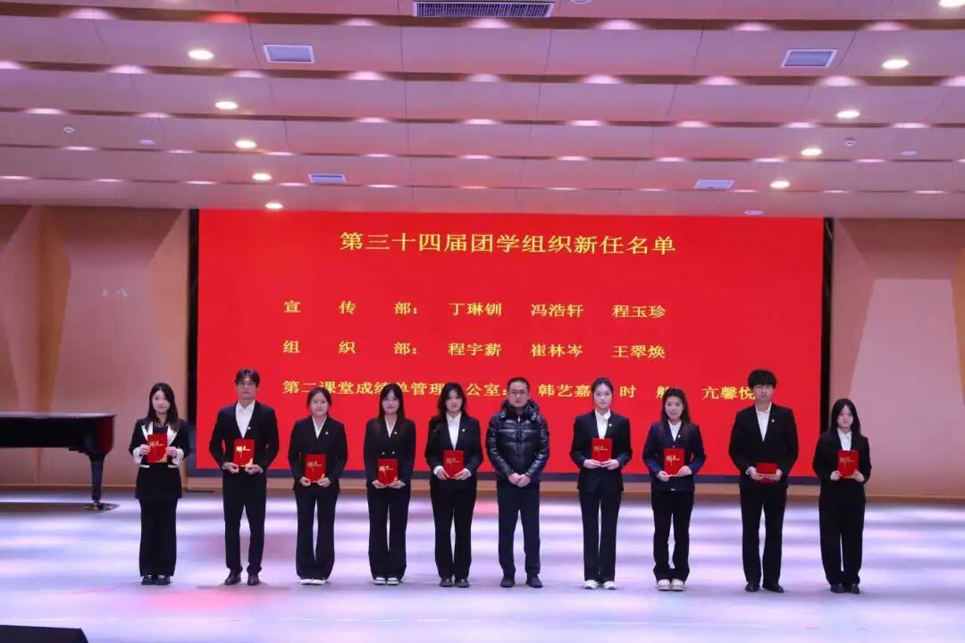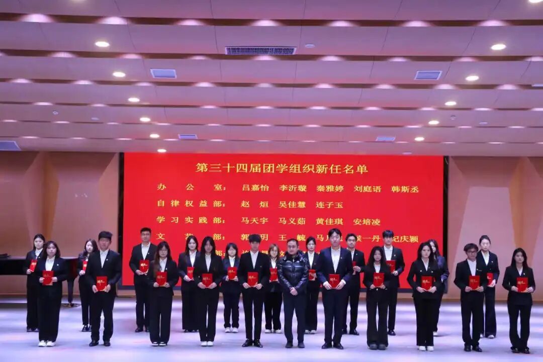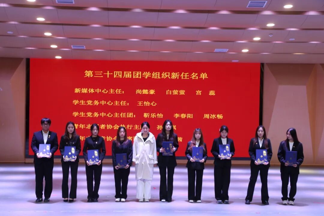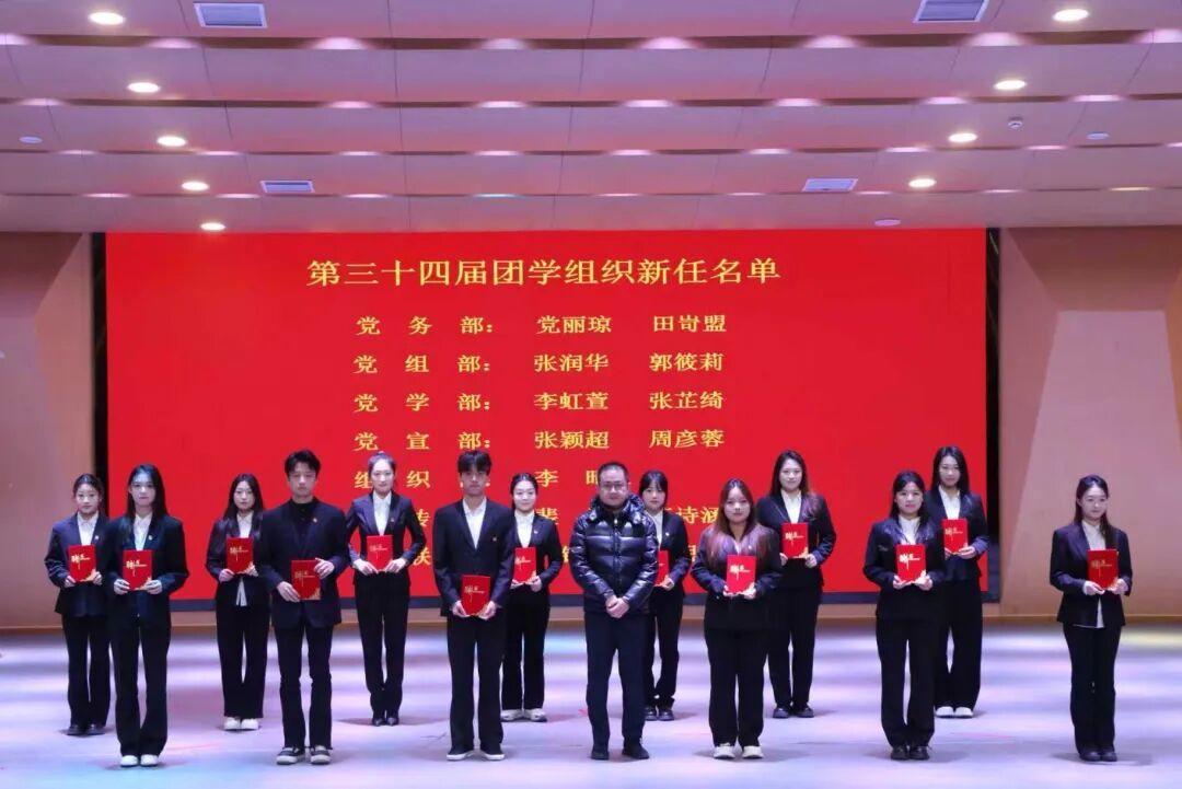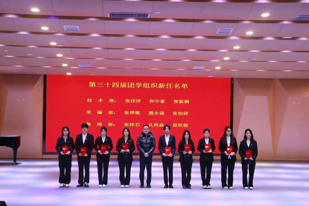 专任员工高靖泽老师宣读第三十四届团学组织新任部门负责人名单并颁发聘书。