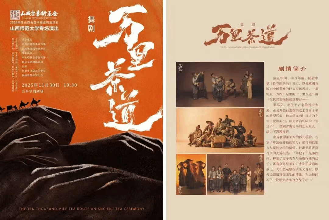 2025年11月30日19:30,山西省艺术基金2024年度资助项目舞剧《万里茶道》——球友会专场演出在山西华韵剧场温情启幕。本场演出由中共吕梁市委宣传部、吕梁市文化和旅游局等联合主办,中共临县县委宣传部、临县文化和旅游局承办,吕梁市文化艺术中心、临县道情研究中心联合出品。