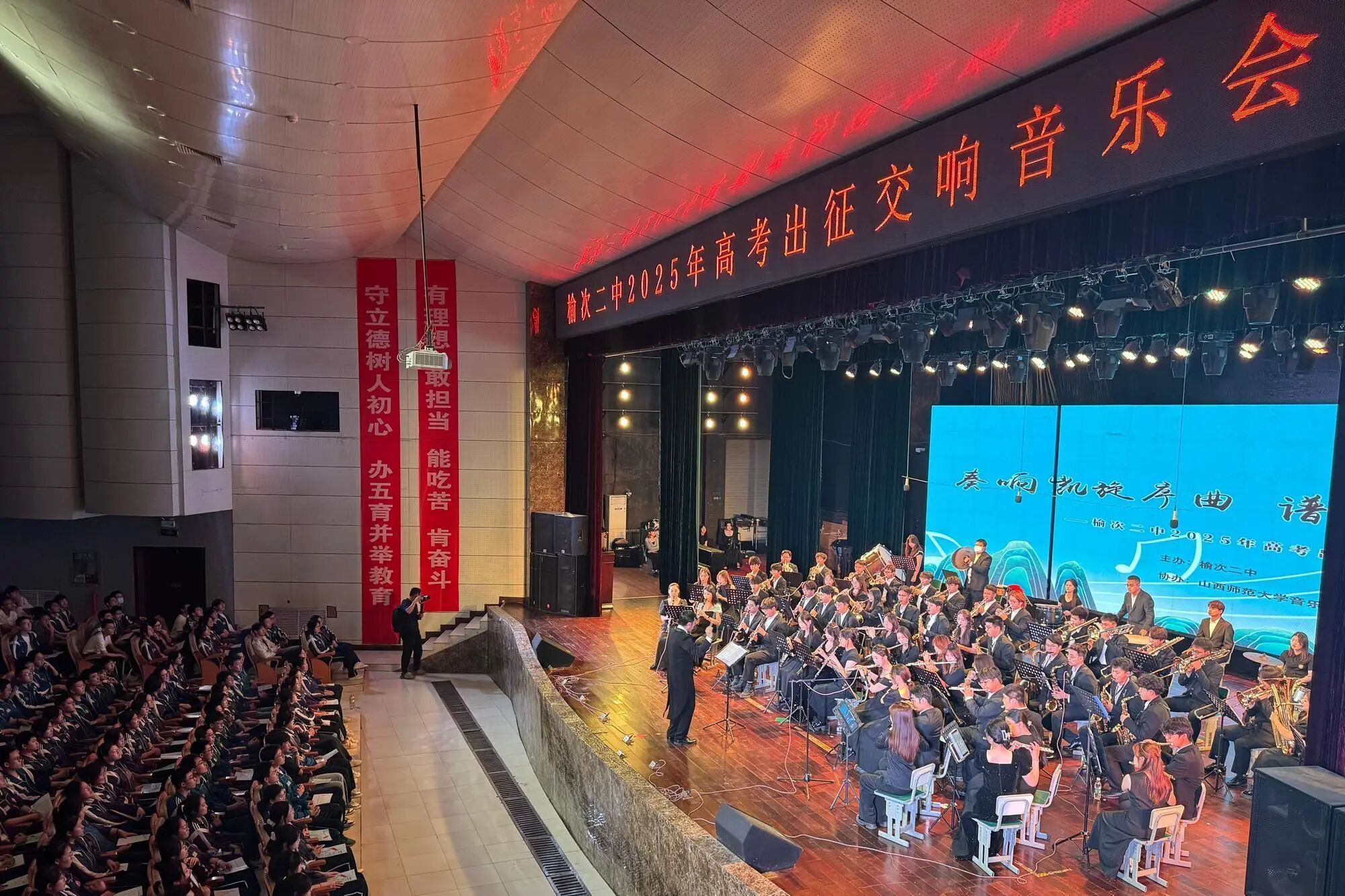 活动当天,球友会院长刘明星、副院长曹晓磊、榆次二中 书记范晓东、分管艺术副校长王保珠、艺术中心主任杨真福等领导,千余名师生共同沉浸在激昂的音乐盛典中。音乐会由榆次二中团委书记裴桃与球友会研究生胡茵共同主持,充分彰显了两校合作的深度与默契。