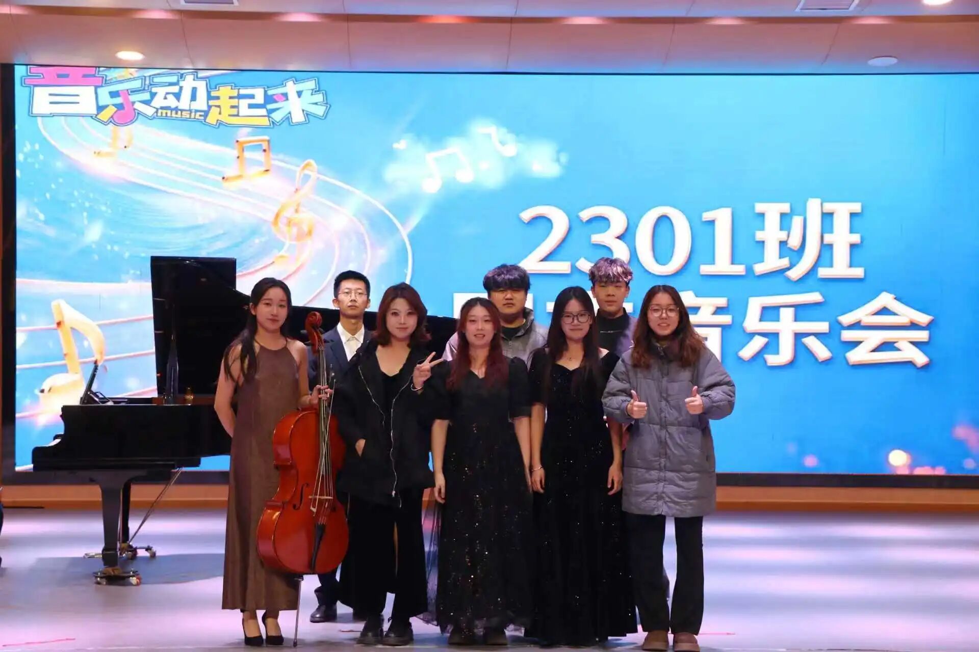 音乐会期间,同学们以流行、民谣等多元风格演绎《七里香》《水星记》等经典翻唱作品,还带来了钢琴、大提琴独奏及合奏表演;现场增设“点歌互动”环节,气氛轻松热烈,掌声与合唱声此起彼伏。