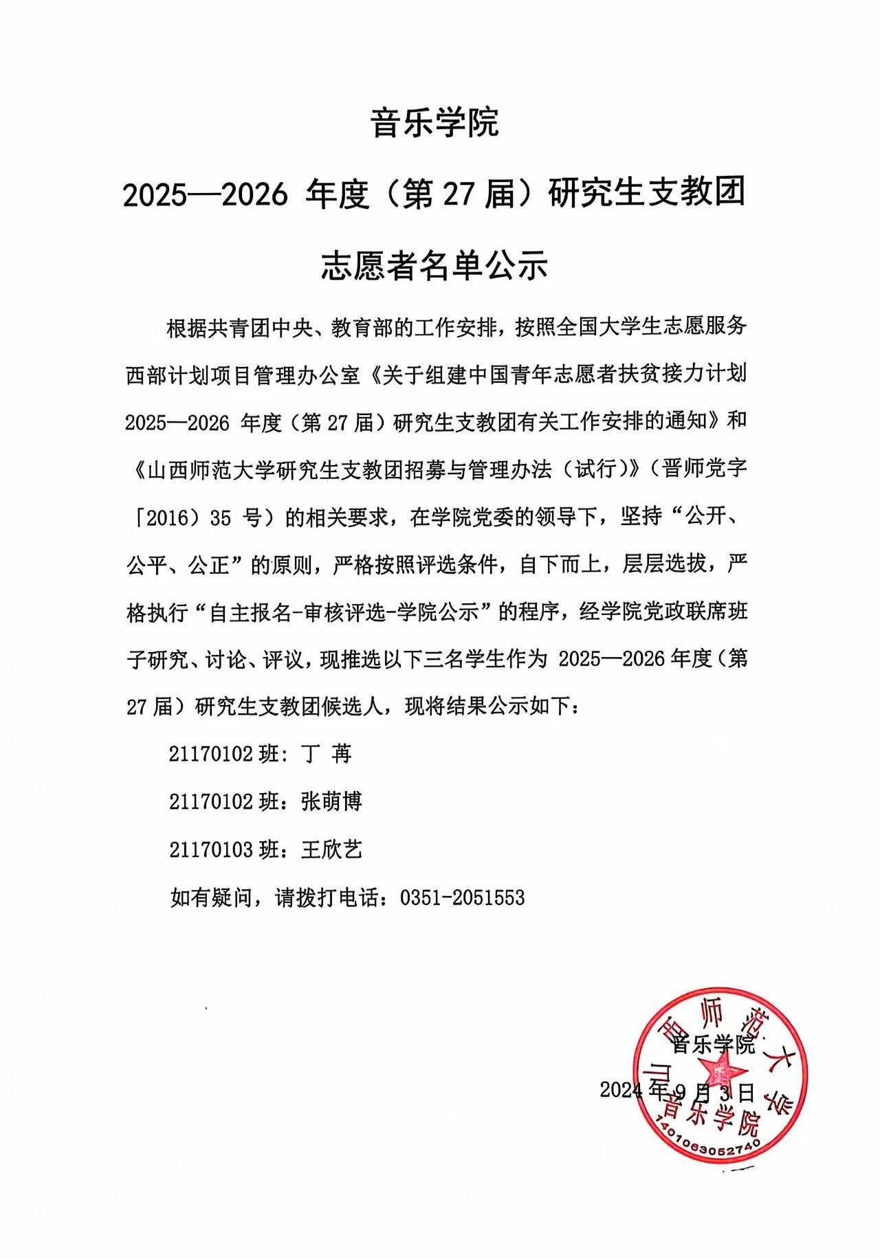 球友会2025-2026 年度(第27届)研究生支教团志愿者名单公示
